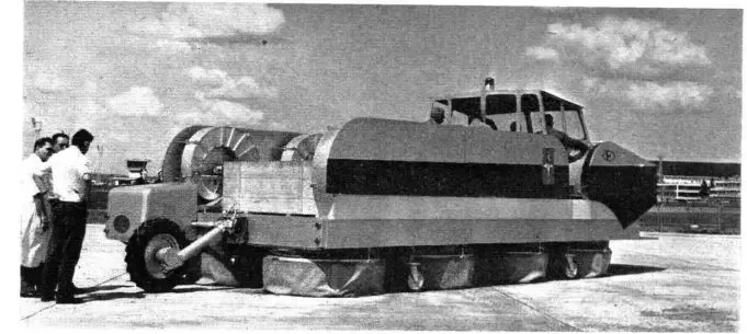 Для справки: в 1959 году британец Кокерелл на судне SR-N1 на воздушной подушке впервые пересек Ла-Манш. Это оказалось очень хорошей рекламой для многообещающей технологии, и энтузиасты по всему миру принялись строить аппараты, опирающиеся на воздушный поток. Жан Бертен к тому времени доводил до ума свою машину, которая оказалась сугубо экспериментальной, слабо приспособленной даже к реальной эксплуатации. Например, у изделия отсутствовала крытая кабина, а прожорливость силовой установки поражала воображение. Но очень хорошо показала себя система с восемью независимыми фартуками. Управление позволяло менять угол наклона, например, четырех передних в одну сторону, а кормовых – в другую.