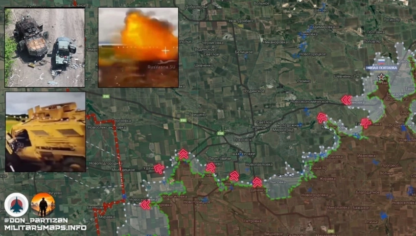 На Южно-Донецком направлении ГрВ «Восток» сообщила об освобождении н.п. Отрадное, расположенное на направлении н.п. Богатырь (недавно освобождён) - н.п. Комар. Враг бросает в контратаки пехоту на НАТОвской бронетехнике, но безуспешно. Продолжается продвижение в сторону Комара. Продолжается штурм Зеленого Поля и Новополя. Идут ожесточённые бои, сообщает Telegram-канал "Два майора".