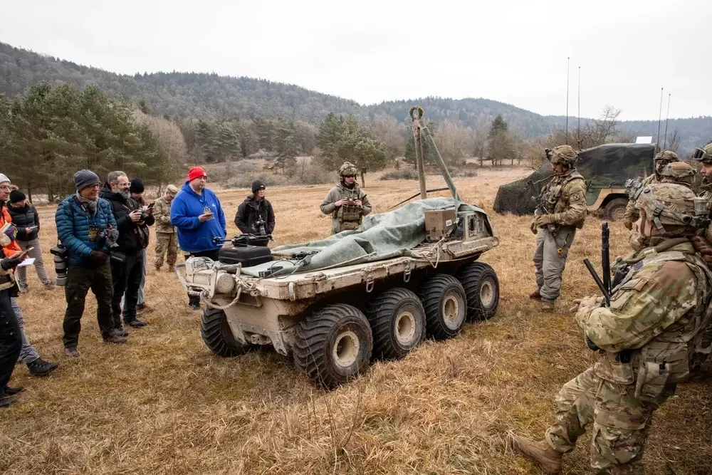 Личный состав знакомится с роботизированной платформой в ходе предыдущих учений по программе TIC
