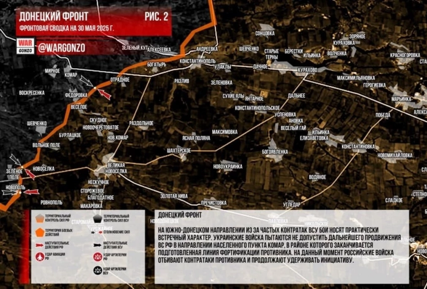 Главные новости » Эксклюзив » ВС РФ ведут ожесточённые бои к северу от дороги Мирноград - Константиновка на Покровском направлении: свежие данные на 30.05.2025