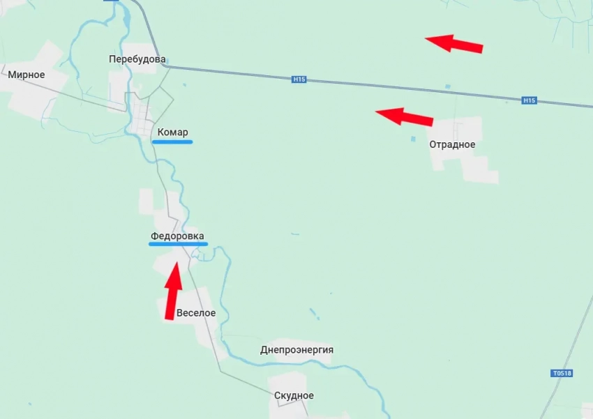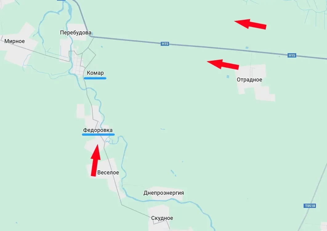 Стоит отметить, что от Фёдоровки до ближайшей точки границы Днепропетровской области около 8 км. После освобождения Отрадного продвижение к этому селу и Комару идёт не только с юга, но и с востока. При этом противнику приходится с потерями отступать, хотя за последние несколько недель, надо признать, на этом участке он смог, что называется, прилично окопаться и навести дополнительные линии обороны.