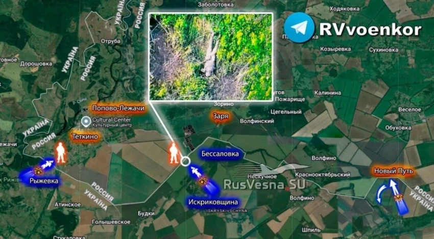 Также в первой половине дня неонацисты 24 ошб "Айдар" (запрещённая в РФ террористическая организация) выдвинулись из Рыжевки в направлении Тёткино. В районе госграницы оккупантов встретили наши операторы FPV, которые уничтожили вражескую штурмовую группу, сообщает Telegram-канал "Северный ветер".