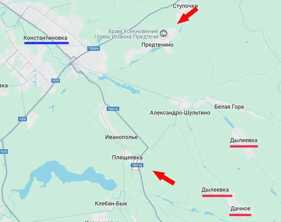 Но продвижение к Нелеповке – это ещё и продвижение к Константиновке. От передовых позиций ВС РФ до Константиновки на данном участке фронта остаётся около 6,5 км.