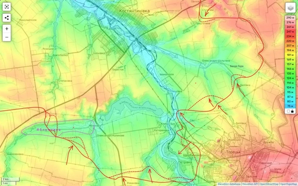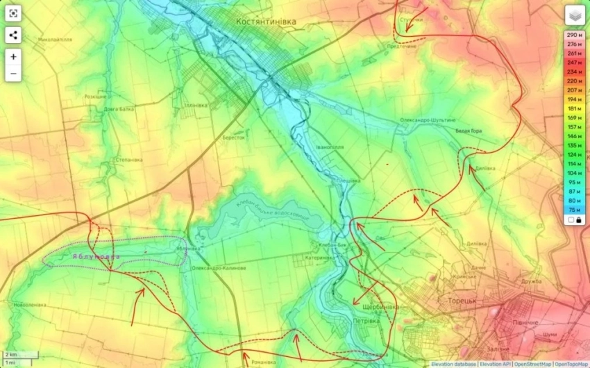 В свою очередь на Константиновском направлении продолжаются ожесточённые бои за выдавливание противника за реку Бычья (южнее Константиновки).