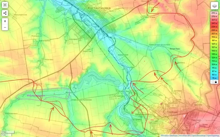 Тяжёлые бои продолжаются в Яблуновке, Щербиновке и в районе Белой Горы севернее Торецка.