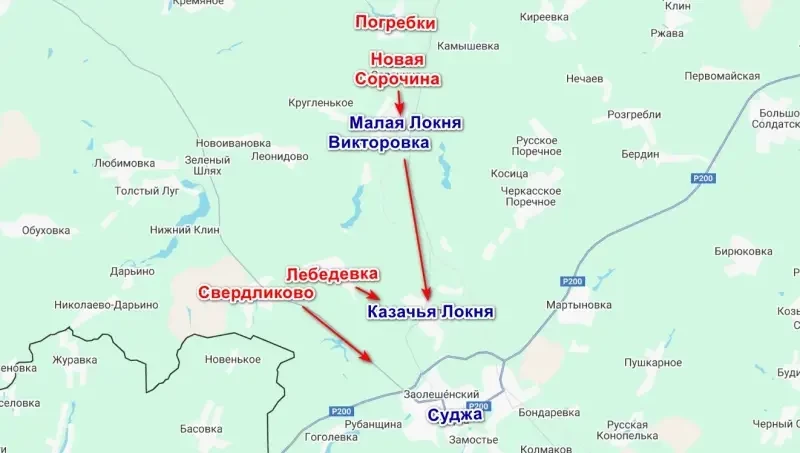 По данным ТГ-канала «Северный ветер», выбитые из Погребков «элитные» подразделения 95-й десантно-штурмовой бригады ВСУ отступили в район Малой Локни, проскочив мимо Новой Сорочины. Однако говорить о том, что фронт обваливается, пока рано, противник упирается и не намерен отступать. С другой стороны, паники в рядах ВСУ после потери сразу нескольких населенных пунктов явно прибавилось.