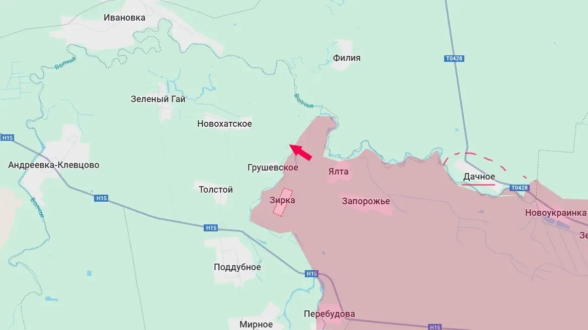 Появляются сообщения о взятии под контроль ВС РФ первого населённого пункта в Днепропетровской области - села Дачное