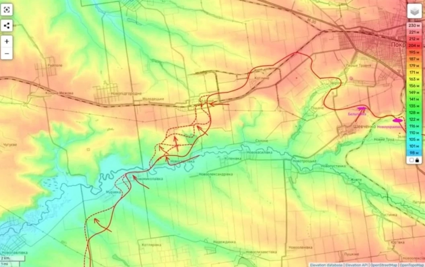 "Здесь мы тоже пытаемся двигаться по хребту на Рай-Александровку, которая, в принципе, держит все коммуникации Северска. Если падают коммуникации в районе Рай-Александровки, падает и Северск автоматически", - подчеркнул Подоляка.