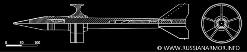 Параметры активной части снаряда: длина 480 мм, диаметр — 30,8 мм, масса 4,5 кг.