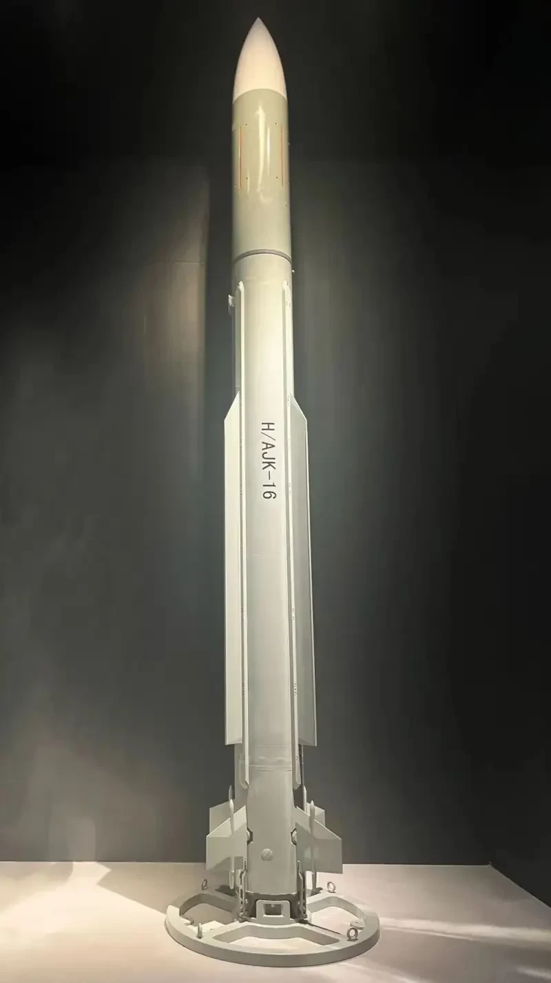 Испытания морского ЗРК HHQ-16 с контейнерными пусковыми установками H/AJK-16 начались во второй половине 2007 года. Стрельбы прошли удачно, и в 2008 году было выдано заключение о готовности этого комплекса к принятию на вооружение. Дальность стрельбы достигала 40 км, потолок – 15 км.