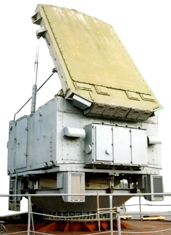 Антенный пост станции подсвета и наведения, установленный на поворотной платформе, выполнен на базе фазированной антенной решетки с электронной стабилизацией луча.