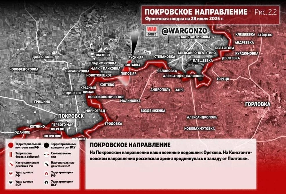 ВС России продолжают вести ожесточённые бои на окраинах Покровска: свежие данные на 28.07.2025