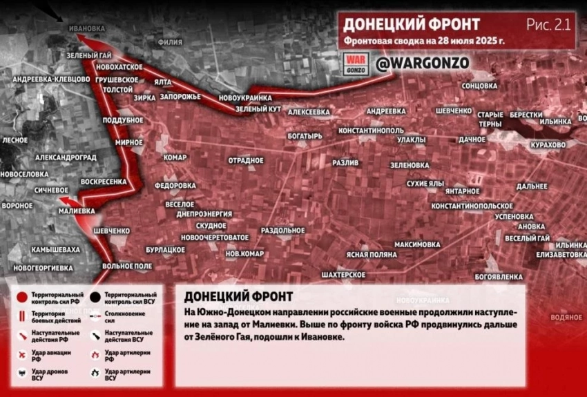 Карта боевых действий на Украине. Ситуация в зоне СВО на 28.07.2025