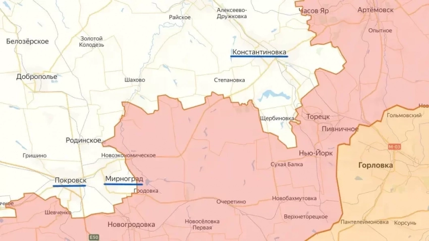 Подразделения ВС России широким фронтом вклиниваются между Покровском и Константиновкой. Они обходят оборону покровской группировки ВСУ с востока и северо-востока, создавая полукольцо, охватывающее Красноармейск и Димитров (переименован киевским режимом в Мирноград). Этот участок фронта считается одним из наиболее важных в зоне проведения спецоперации.