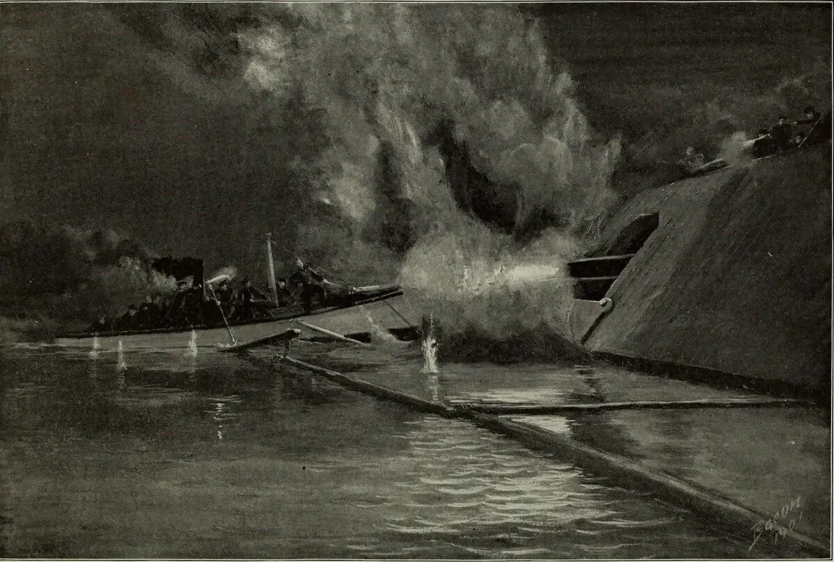 Уильям Каушинг атакует «Альбемарл».