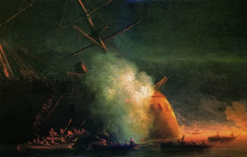 Потопление минными катерами турецкого сторожевого корабля «Интибах», худ. И. Айвазовский