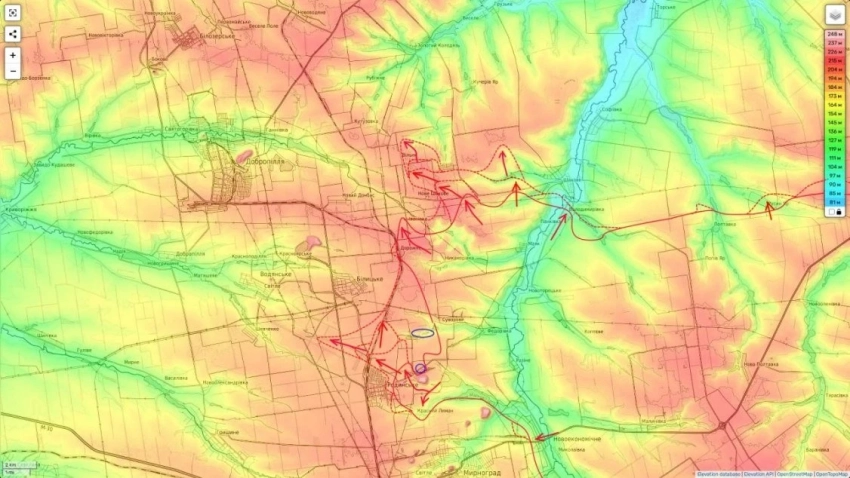 И продвинулись они довольно глубоко не только в сторону центра, но и как вы видите по карте 1 (которая была нарисована мной еще 25 июля) довольно глубоко вдоль трассы М-30 (к западной транспортной развязке, которая имеет для окружения покровско-мирноградской агломерации ключевое значение). При этом в рядах ВСУ в городе начались случаи паники и «дружественного огня», так как противник не понимал обстановки, а нормальной связи между подразделениями у него здесь не было, сообщает Юрий Подоляка в своём Telegram-канале.