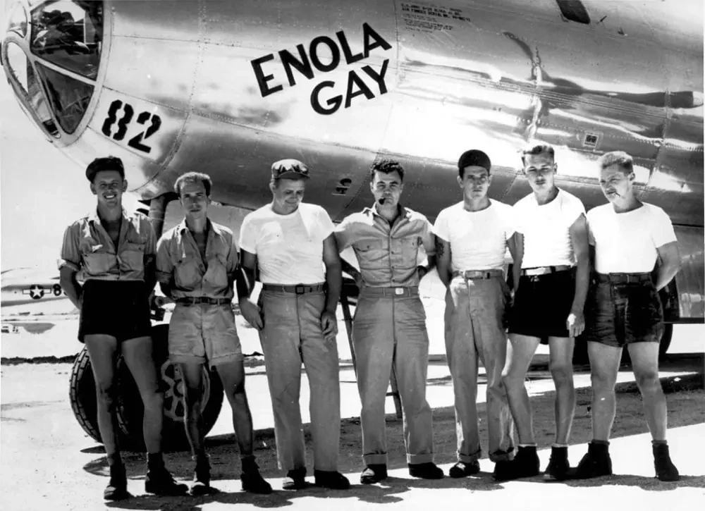 На заглавном фото в центре — командир самолета B-29 Superfortress (Enola Gay) Пол Уорфилд Тиббетс-младший, который и сбросил первую атомную бомбу на Хиросиму. Впоследствии Тиббетс дослужился до бригадного генерала ВВС США. Умер он в 2007 году и неоднократно заявлял, что нисколько не сожалеет о том, что произошло ранним утром 6 августа 1945 года в Японии.