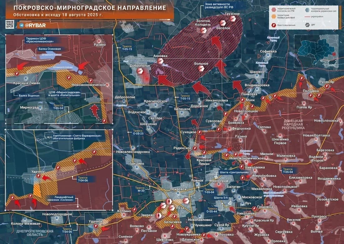 ВС РФ перемалывают оборону ВСУ у Покровска и продолжают мощно наступать, карта боевых действий на утро 19 августа