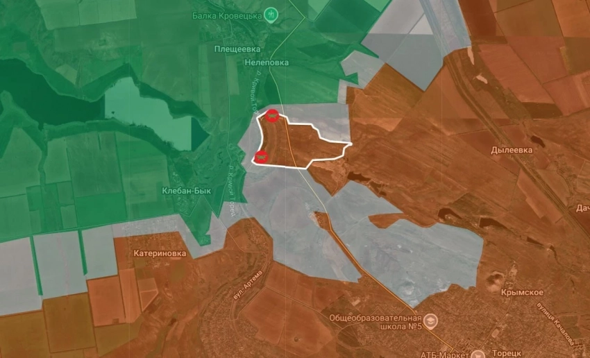 На Константиновском направлении ВС РФ продвинулись северо-восточнее Клебана-Быка. Площадь продвижения: 1,29 км².