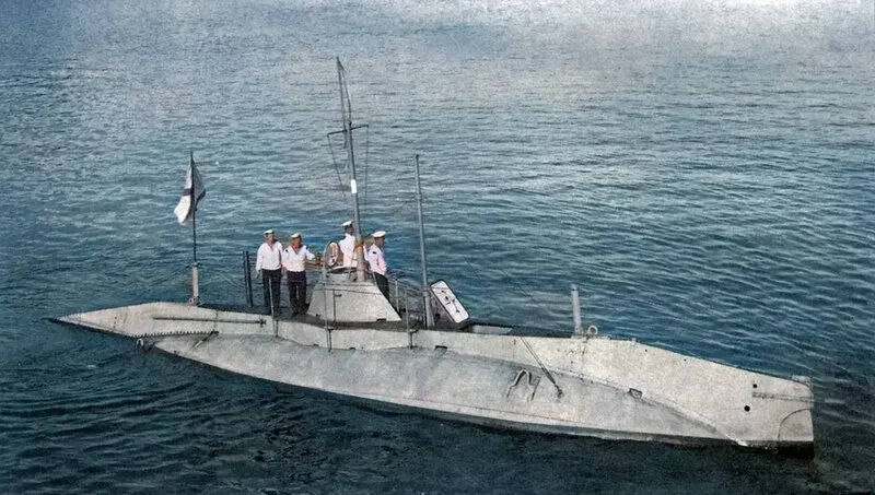 Проект «Акулы» утвердили 3 мая 1905 года, в декабре 1906 года она была заложена, а спущена на воду 22 августа 1909 года. В сентябре 1911 года лодку ввели в строй. Надводное водоизмещение составило 370 тонн, подводное — 475 тонн, силовая установка — 3 дизеля мощностью по 300 лошадиных сил и электродвигатель той же мощности. А вот вооружение у «Акулы» было завидное: два носовых торпедных аппарата, два — кормовых и четыре торпедных аппарата Джевецкого по бортам. Лодка в Первую Мировую войну совершила несколько торпедных атак, успешность которых вызывает сомнения, а 28 ноября 1915 года вышла в поход, из которого не вернулась. Обнаружили субмарину в 2014 году у побережья острова Хиума — на ней сохранилась легко читаемая надпись «Акула», нос — оторван, надводный компас — в рабочей позиции, перископы — убраны, рядом обнаружены 4 мины, которые она перевозила на палубе. Судя по всему, невезучая подлодка напоролась на дрейфующую мину...