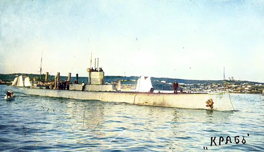 Ещё одной лодкой, не пошедшей в серию, стал подводный минный заградитель «Краб». Его проект в 1906 году предложил МТК инженер Михаил Налётов. Первый проект был отклонён, но Налётов исправил сделанные замечания и представил второй... В железе был воплощён четвёртый вариант проекта. Подлодка строилась в Николаеве, на заводе «Наваль», работы возглавлял инженер Иоаким Каннегисер. Корабль был спущен на воду в 1915 году и вошёл в состав ЧФ. Минный заградитель, получивший имя «Краб», мог брать на борт 60 мин и 4 торпеды. За годы войны он осуществил два подводных минирования Босфора и одно — Варны. На выставленных минах подорвалась турецкая канонерка «Иса-Рейс» и, возможно, крейсер «Бреслау» (но там — дело тёмное, в том же районе кроме «Краба» и эсминцы мины ставили). В апреле 1919 года «Краб» затопили в Северной бухте Севастополя. В 1935 году подлодку подняли, но восстановление было признано нецелесообразным — техника ушла далеко вперёд...