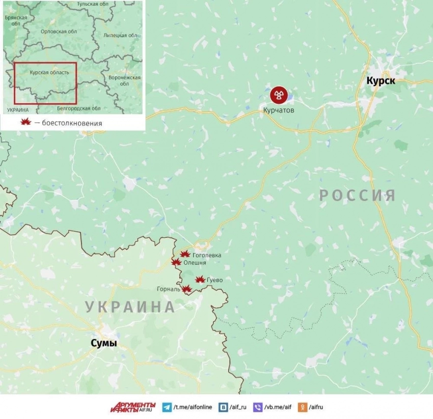 Карта боевых действий в Курской области. Данные на 20 марта