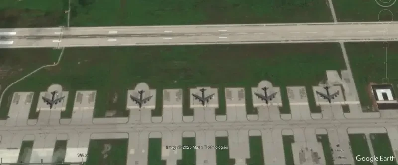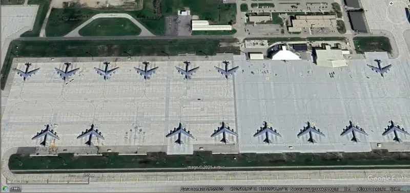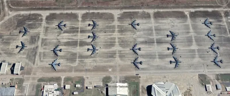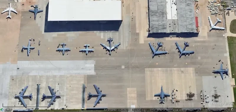 Спутниковый снимок Gооglе Еarth: бомбардировщики В-52Н на авиабазе Андерсен