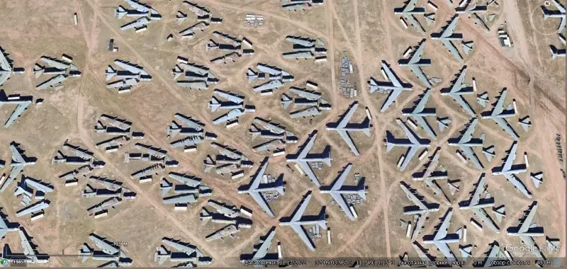 Спутниковый снимок Gооglе Еarth: бомбардировщики В-52 на базе хранения авиационной техники в Девис-Монтан