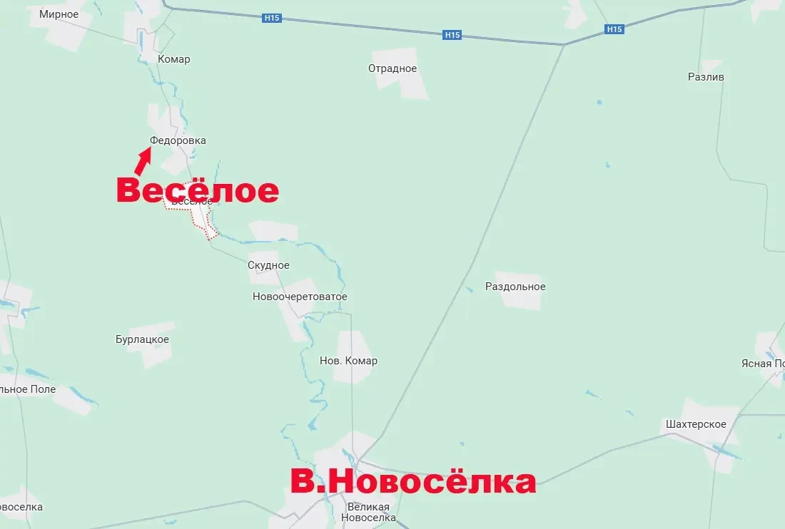 Поступает информация о том, что сегодня подразделения Вооружённых сил России освободили село Весёлое, что на западном берегу реки Мокрые Ялы.