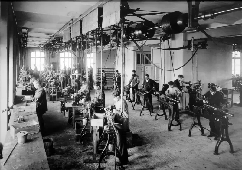 На фото: рабочие на телефонной фабрике