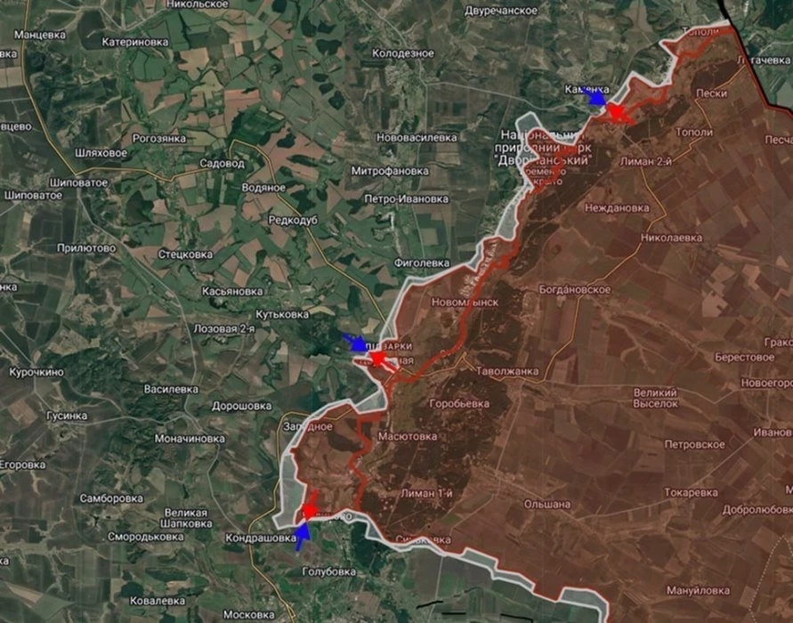 20 км севернее Красного Лимана ВС России завязали бои за н.п. Новое, расположенное у недавно освобождённой Катериновки.