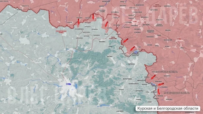 В свою очередь Telegram-канал "Северный ветер" информирует о том, что на Сумском направлении Северяне в ходе ожесточённых боёв продолжают выбивать противника из приграничных населённых пунктов на украинской территории.