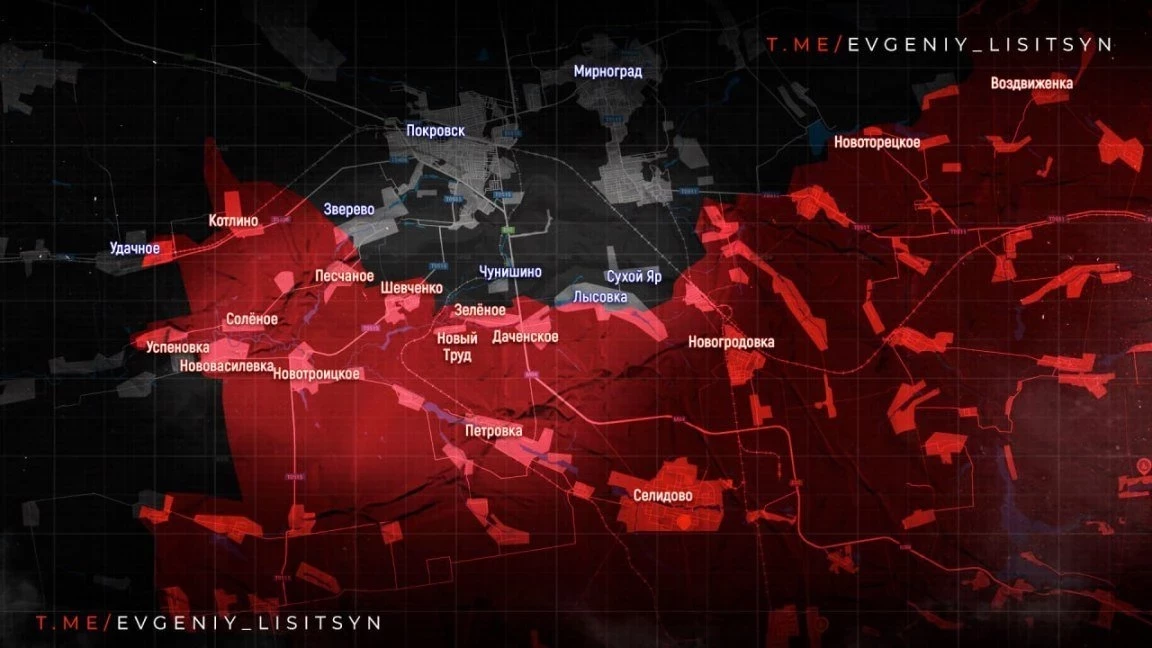 На Покровском (Красноармейском) направлении идут бои вблизи н.п. Зелёное Поле, Водяное Второе, Песчаное, Котлино, Удачное и Андреевка.