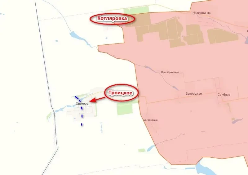 Село Троицкое, находящееся к юго-западу от Покровска между реками Соленая и Волчья, расположено недалеко от границы Днепропетровской области. Бои за него начались еще в начале апреля, противник сопротивлялся ожесточенно, пытаясь не пропустить подразделения ВС РФ в соседний регион. Но нашим удалось взломать оборону врага и выбить его из населенного пункта. Сейчас Троицкое находится под полным контролем российских войск, которые продвинулись еще дальше.