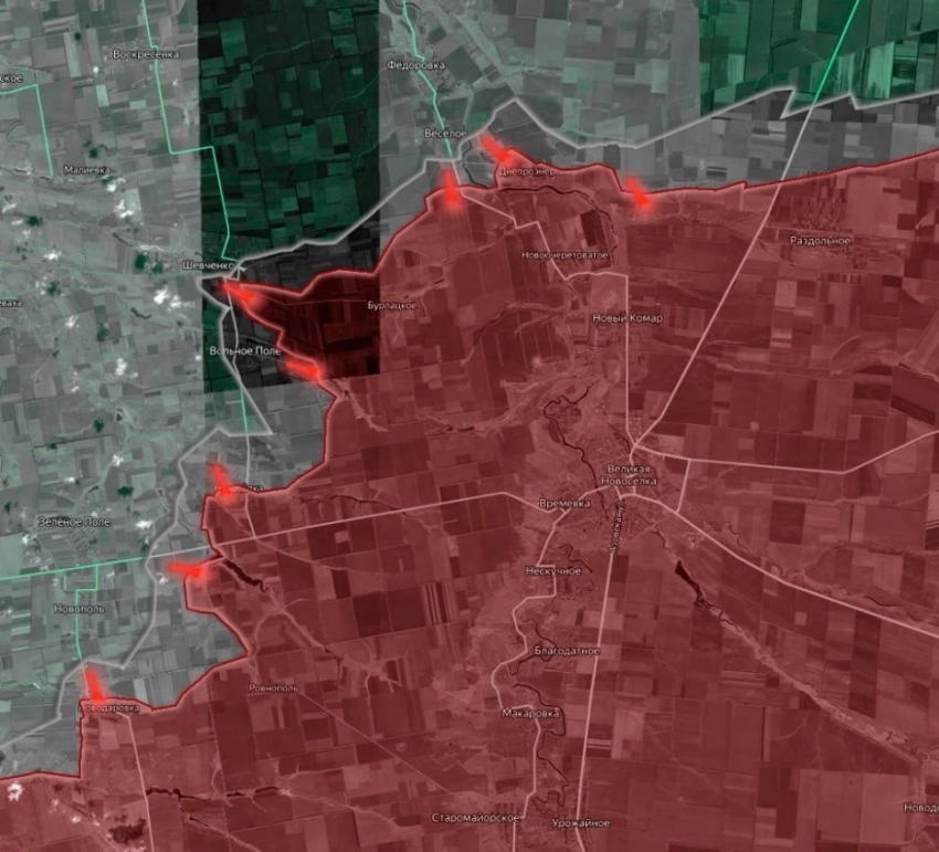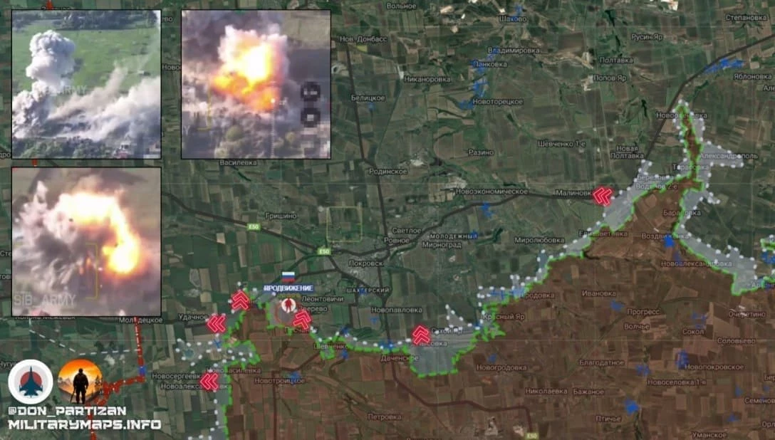 На Покровском направлении ВС РФ заняли позиции в центре Леонтовичей (Первомайского), севернее Зверево. Контратаки ВСУ в районе Миролюбовки и Елизаветовки отражены.