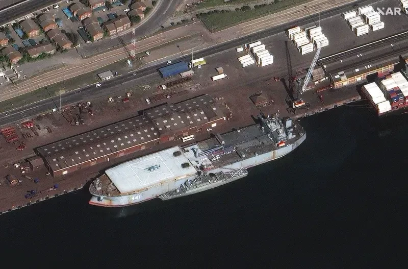 «Макран» перед походом в Санкт-ПетербургВидны артустановки и боевые катера