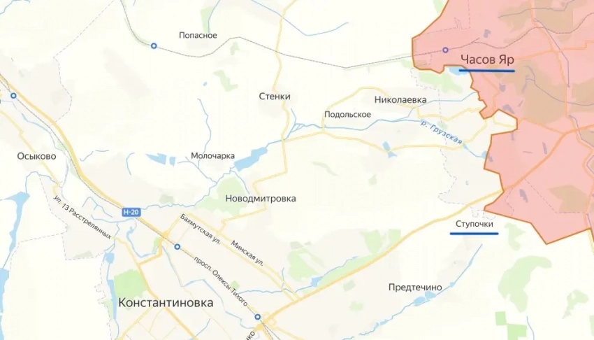 ТГ-канал «Два майора» ничего о ситуации в этом населенном пункте не сообщает, но утверждает, что подразделения ВС РФ успешно продвигаются в черте Часова Яра к югу и западу от огнеупорного завода.