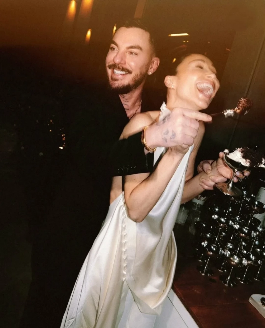 Церемония бракосочетания состоялась 5 мая в Беверли-Хиллз, на ней среди примерно 50 гостей присутствовали бывшая “Мисс Вселенная” Оливия Калпо, которая сейчас ждет ребенка, и ее муж Кристиан Маккэффри. Джаред Лето, конечно, тоже не мог пропустить торжество.