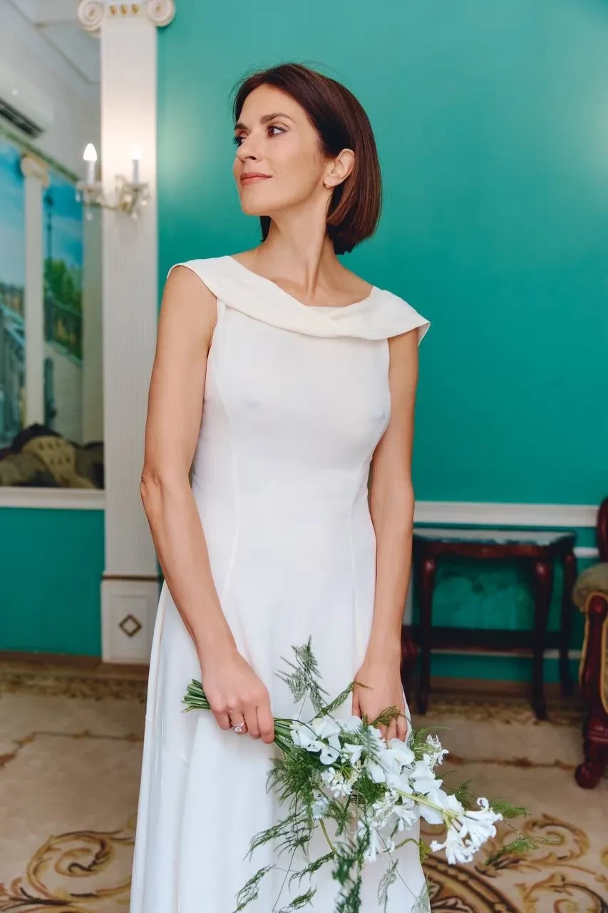 Торжество состоялось в Грибоедовском ЗАГСе в Москве. Для церемонии Ксения выбрала платье Prada и плащ Sanchy в тон, дополнив образ минималистичным букетом невесты. Жених был в классическом чёрном костюме. Праздник прошёл в кругу близких — с парой были их дети от предыдущих отношений.