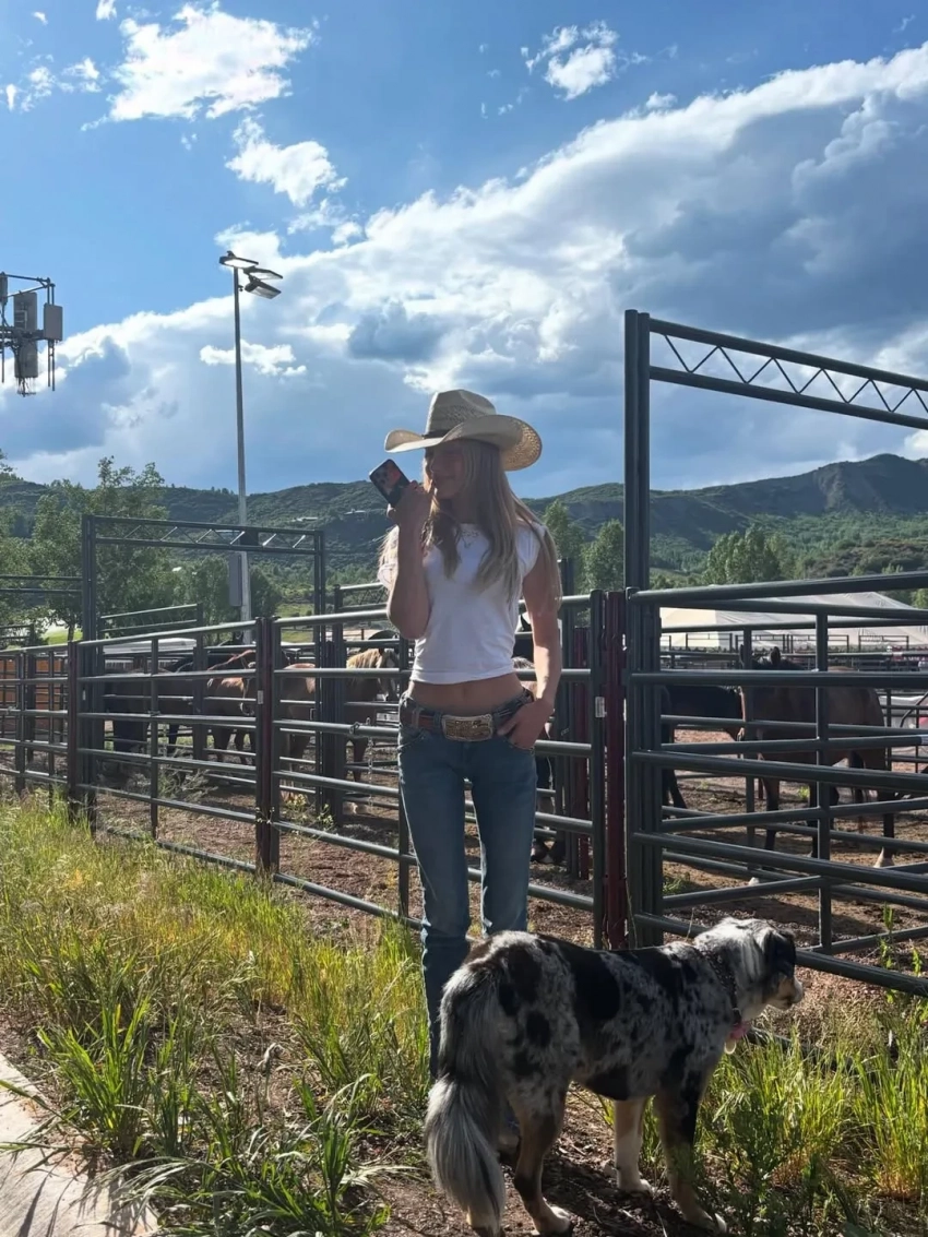 Хадид проводит много времени на ипподроме с бойфрендом-ковбоем и своей собакой, а также ходит на местные рынки с друзьями и снимается для модных брендов.