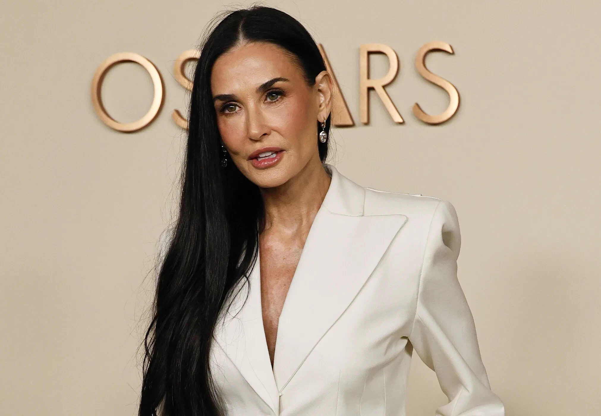 Деми Мур, Зои Салдана, Синтия Эриво/Фото: Frazer Harrison/Getty ImagesНа мероприятие пригласили около 200 номинантов этого года. Все они сделали традиционное совместное фото перед ужином. Сама церемония награждения премии "Оскар" пройдёт 3 марта в Лос-Анджелесе.