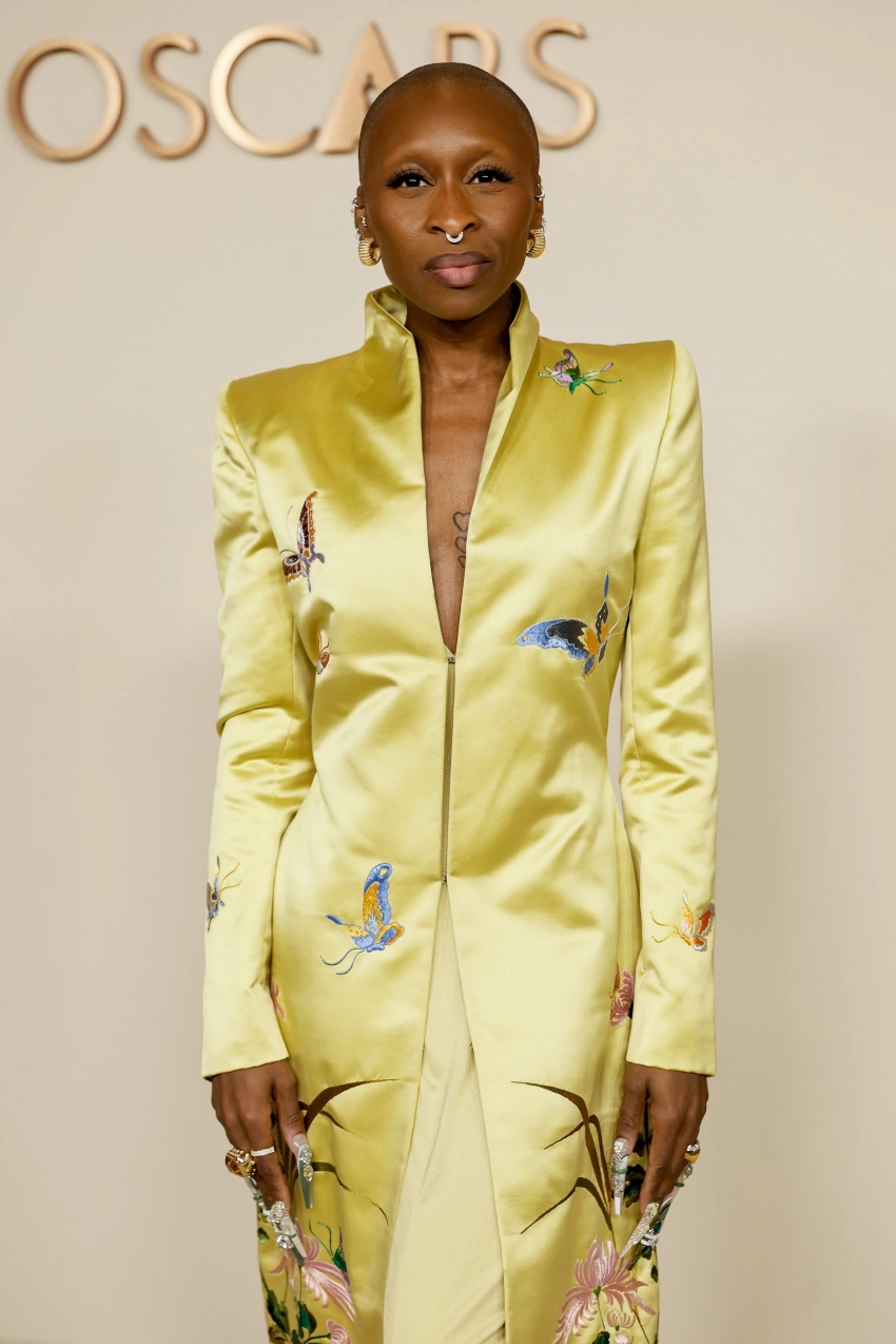 Синтия Эриво/Фото: Frazer Harrison/Getty Images62-летняя Деми Мур появилась в белом костюме от Нины Риччи. Зои Салдана выбрала для мероприятия бордовое платье со свободными пышными рукавами. Синтия Эриво появилась в жёлтом платье в пол с вышивкой бабочек и цветов. Звезда "Аноры" Майки Мэдисон пришла в тёмно-синем платье без бретелек.
