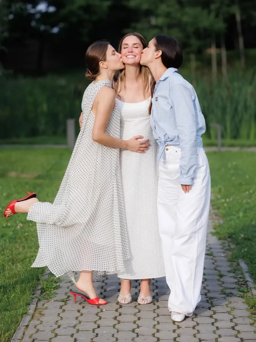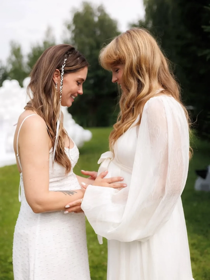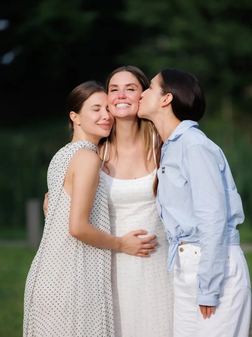 Агата Муцениеце"История настоящего чуда, которое мне посчастливилось видеть с самого первого мига. Буду хранить его в сердце как оберег от всего зла в этом мире, — написала в соцсетях Олеся Шиповская. — Вы мой талисман настоящей любви и света. Поздравляю вас, мои невероятные Агата и Петя, у вас будет маленькая принцесса! Спасибо небесам за такие сны наяву".