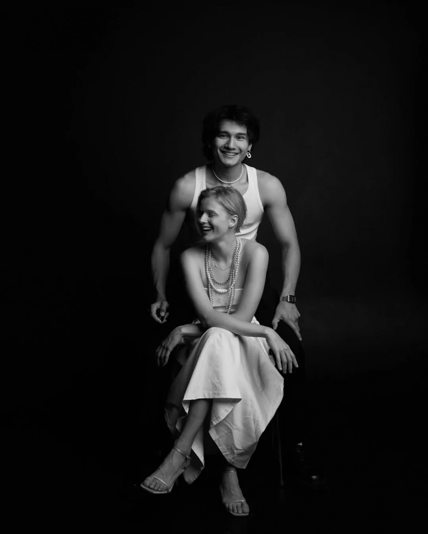 30-летняя Саша Бортич показала новые фотографии со своим бойфрендом, 27-летним актёром Давидом Сократяном. На чёрно-белых снимках пара позирует в фотоателье.