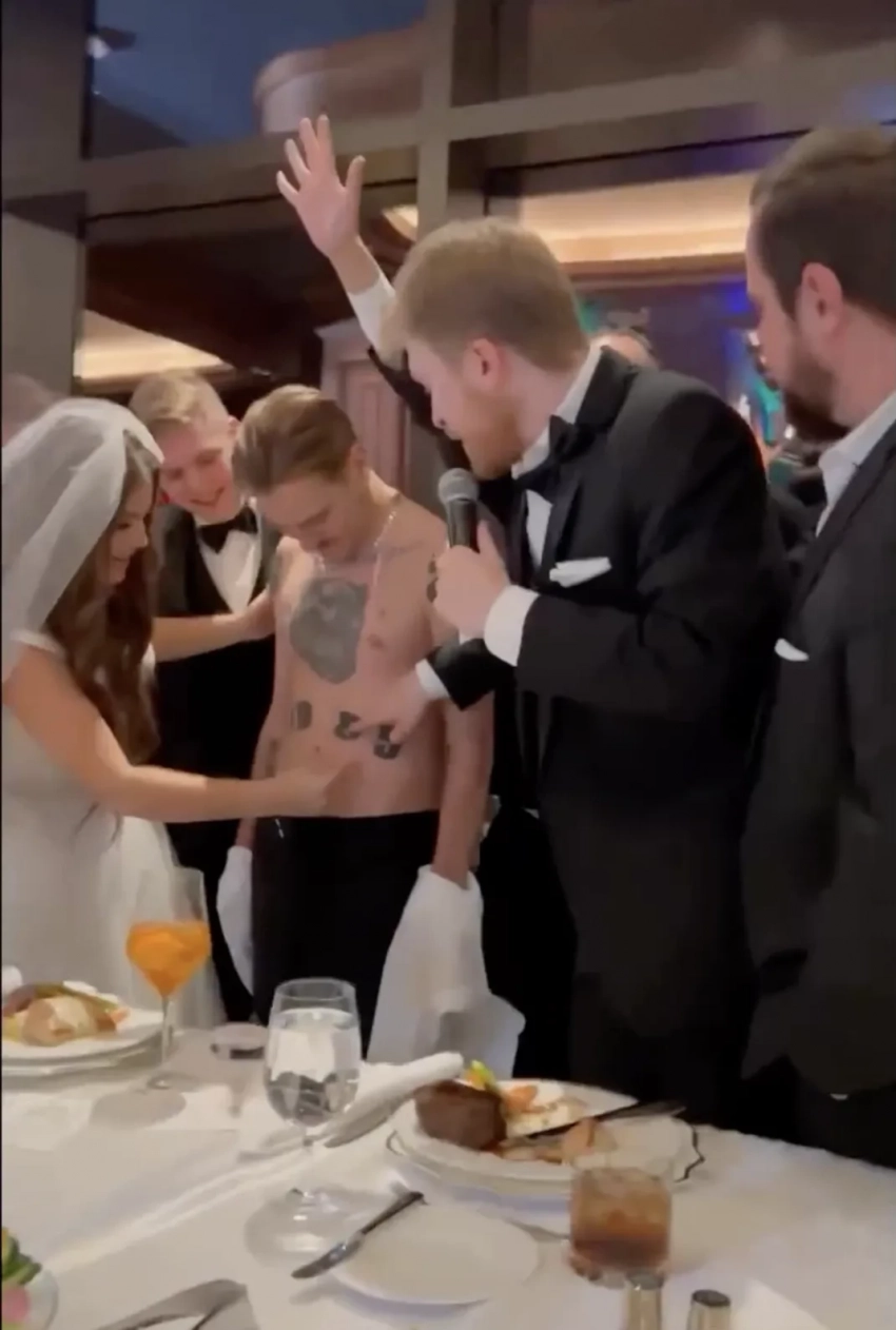 Свадьба артистов, которые известны своим эпатажным творчеством, на удивление фанатов, прошла в традиционном стиле. Молодожёны и их близкие собрались в ресторане Allē Lounge on 66, расположившемся на 66-м этаже небоскрёба в Лас-Вегасе, невеста надела классическое белое платье с пышной юбкой и фатой, а гостей развлекал тамада.