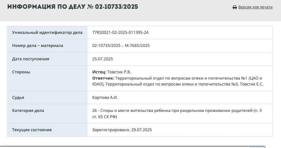 История о драме в семье Дибровых обрастает подробностями: стало известно, что "любовник" Полины Дибровой, к которому она якобы ушла от мужа, не только разводится со своей женой, но и намерен отсудить у неё всех шестерых детей. Иск об определении места жительства детей был подан в суд Москвы 25 июля — его можно найти на официальном портале Судов общей юрисдикции города Москвы.