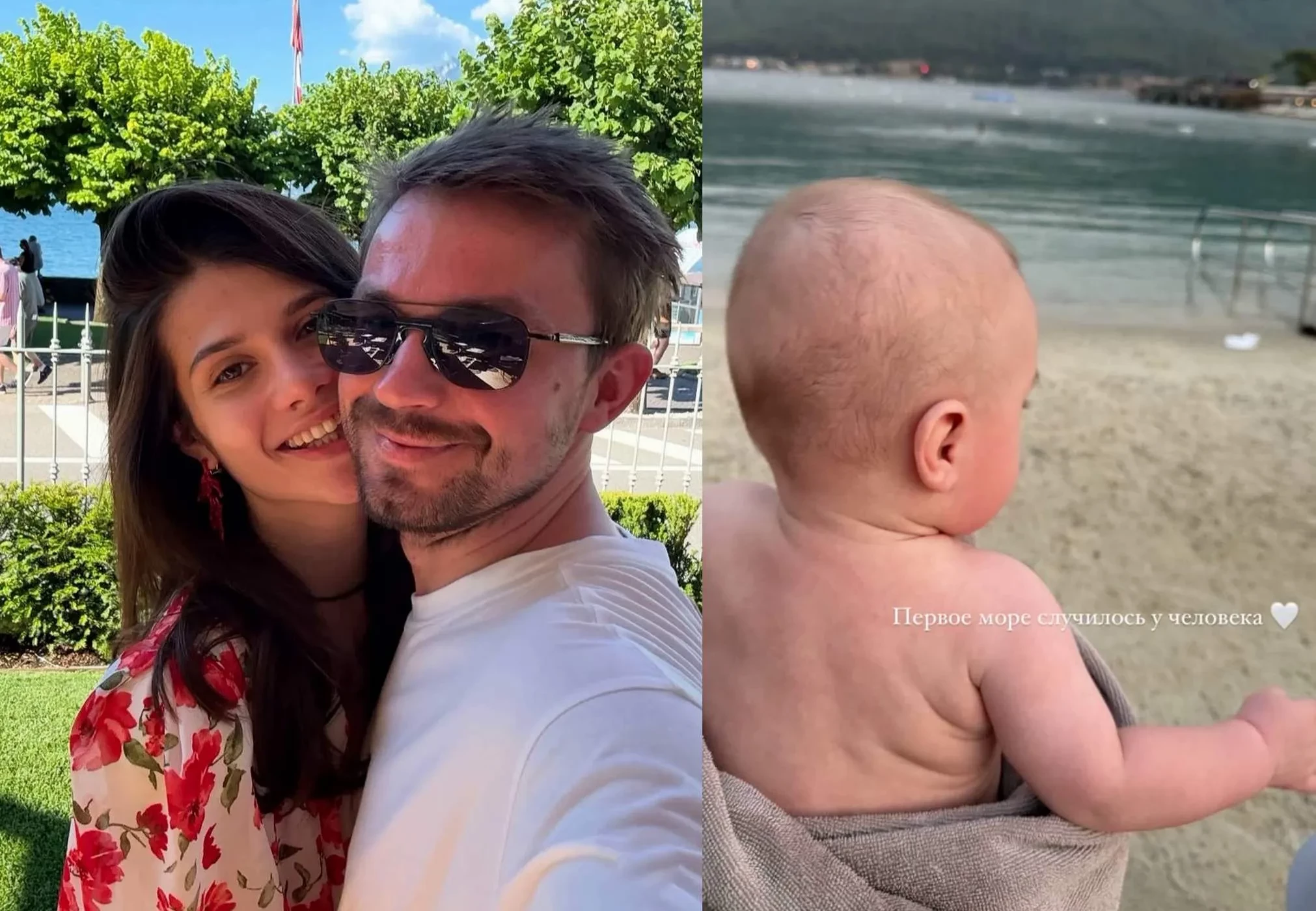 "Первое море случилось у человека", — подписала Виктория снимок, на котором её с Александром сын, обёрнутый в полотенце, запечатлён на морском побережье.