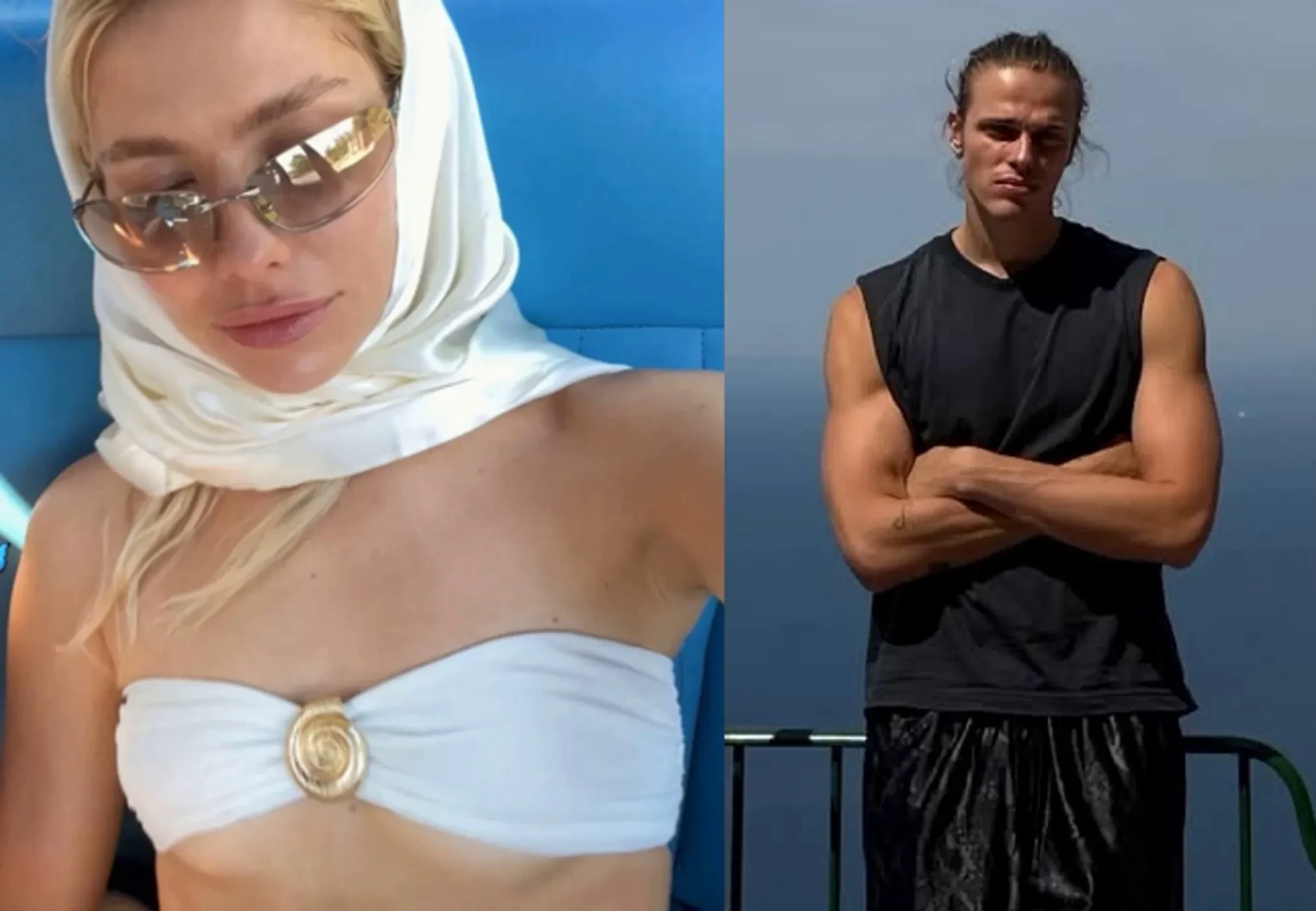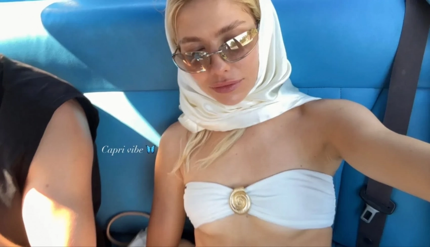 В своих соцсетях влюблённые поделились фотографиями с отдыха. На одном из кадров можно увидеть Елену в белом купальнике, солнцезащитных очках и платке на голове, сидящую в машине рядом с Тарасом. “Вайбы Капри”, — подписала снимок модель.
