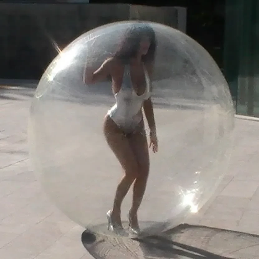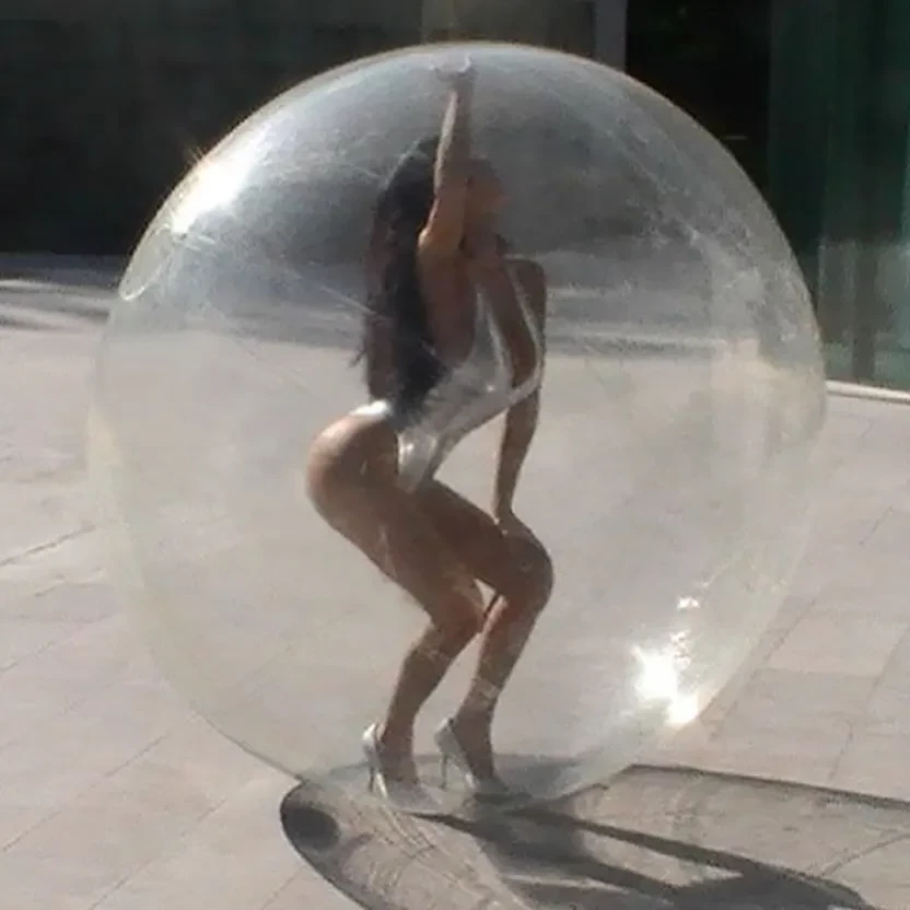 30-летяя жена Канье Уэста Бьянка Цензори опубликовала снимки с новой фотосессии, в которой предстала в серебристом боди и на каблуках. На фото она позирует, сидя на полу заднего двора частного дома. На части фото она также запечатлена внутри прозрачного "пузыря".